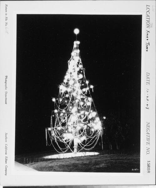 L1.1 - Lighting, misc. - Christmas trees on Wilshire Blvd. [Illuminated Christmas tree in front of private residence].
