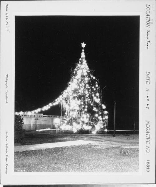 L1.1 - Lighting, misc. - Christmas trees on Wilshire Blvd. [Illuminated Christmas tree in front of private residence].