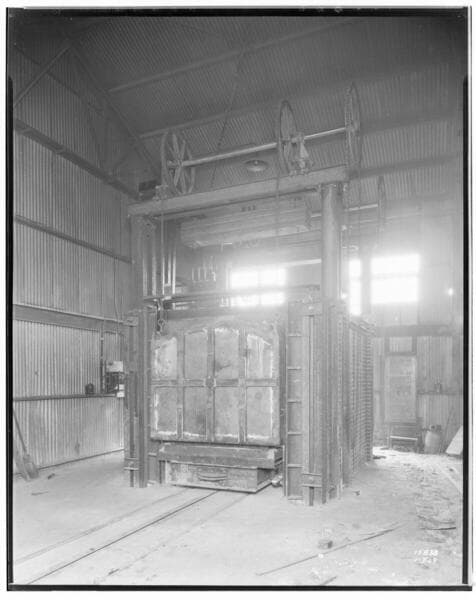 H1.1 - Heavy Duty Industrial misc. - Electric furnace at Hotpoint plant. [furnace door open].