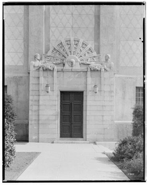 B1.1 - Buildings Miscellaneous - Hope Street entrance to the Los Angeles Public Library. [across the street from the Edison Building.].