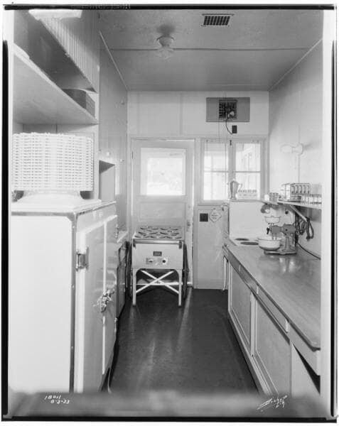 H1.2 - Heavy Duty Cooking - Metropolitan Water District - Camp Berdoo - Kitchen in mess hall with kitchen staff.