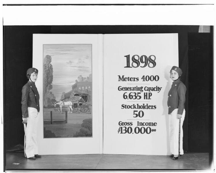 D2.1 - Displays, misc. - Busy Buttons and Dick Smith's Big Book of Bunk - page 2 (1908) 42,234 meters, 300 stockholders, capacity 97,260 H.P., gross inc. $2,477,062.