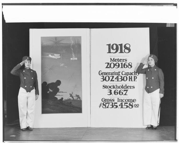 D2.1 - Displays, misc. - Busy Buttons and Dick Smith's Big Book of Bunk - page 2 (1908) 42,234 meters, 300 stockholders, capacity 97,260 H.P., gross inc. $2,477,062.