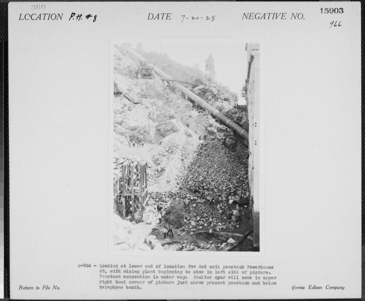 Big Creek Powerhouse #8 - showing new roadway under Unit #1 Penstock. Incline trestle in the background.