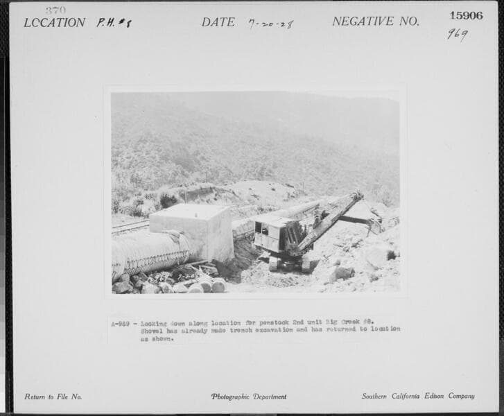 Big Creek Powerhouse #4 - Penstock anchors and excavation down penstock.
