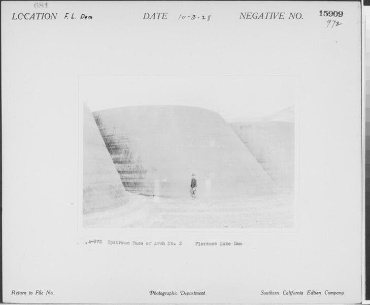 Big Creek, Florence Lake Dam - Upstream face of Arch #2, Florence Lake Dam.