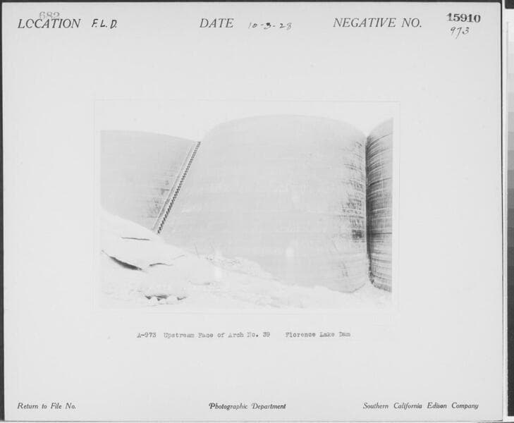 Big Creek, Florence Lake Dam - Upstream face of Arch #1, Florence Lake Dam.