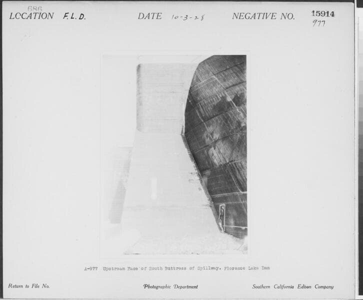 Big Creek, Florence Lake Dam - Upstream face of Angle Buttress No. 49.