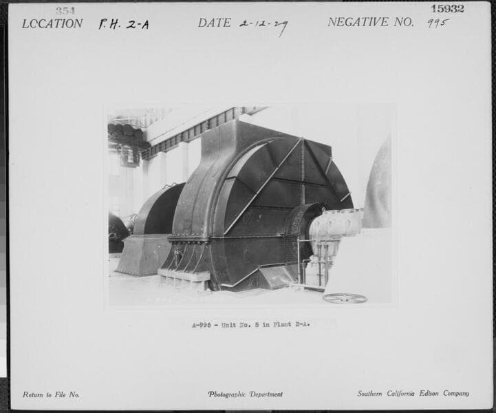 Big Creek Powerhouse 2A - Units #1 & #2, otherwise known respectively as Allis Chalmers, and Pelton Units, in plant 2A, Big Creek.