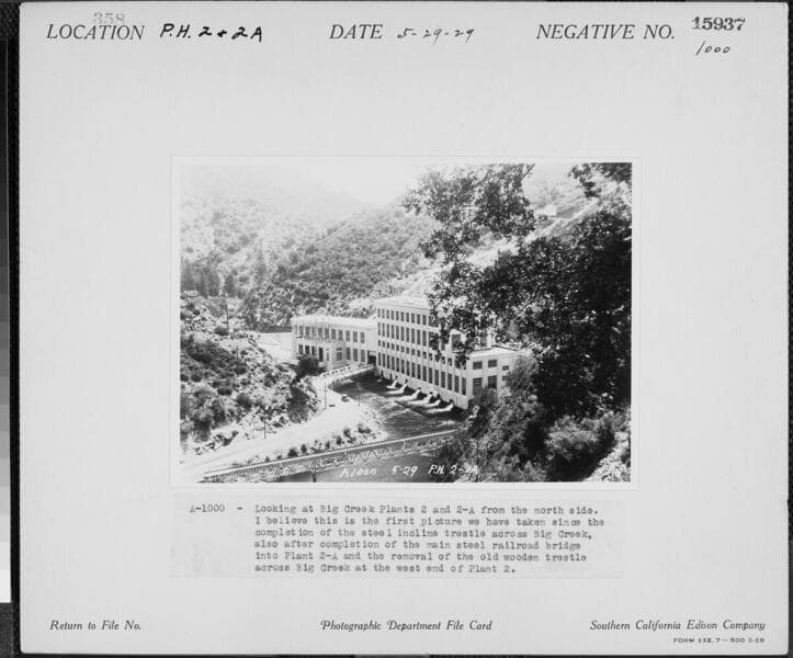 Looking at Big Creek Plants 2 and 2A from the north side. I believe this is the first picture we have taken since the completion of the steel incline trestle across Big Creek