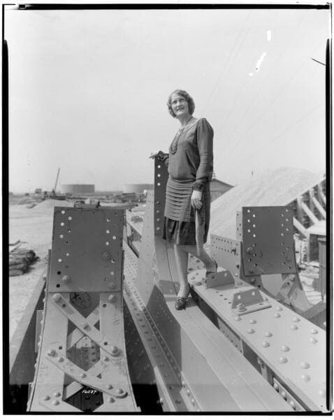 Long Beach Steam Station, Plant #3 - Steel for #11 addition with Miss. Hall posing.