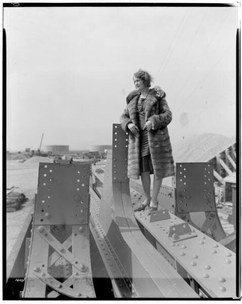 Long Beach Steam Station, Plant #3 - Steel for #11 addition with Miss. Hall posing.