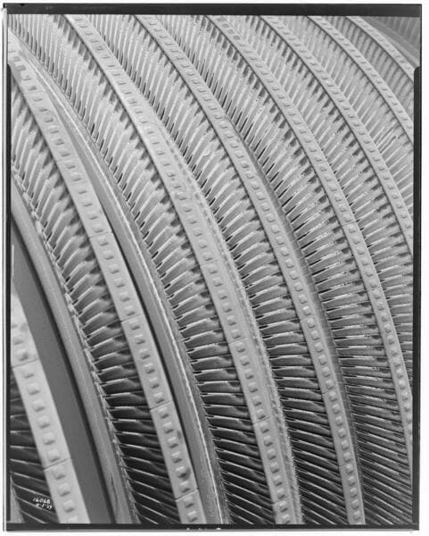 Long Beach Steam Station, Plant #3 - #10 turbo dismantled - showing deposit on blades.