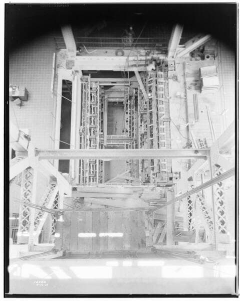 Long Beach Steam Station, Plant #3 - Looking down on Boiler Room steel structure.
