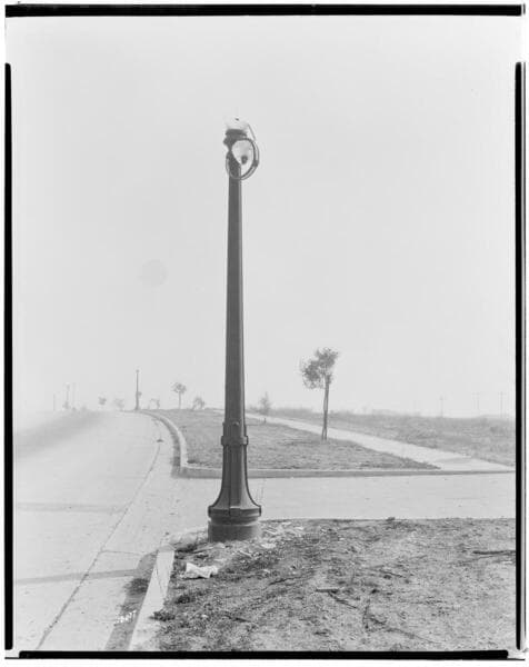 A1.4 - Natural Disasters - Streetlight Post damaged showing broken lamps.