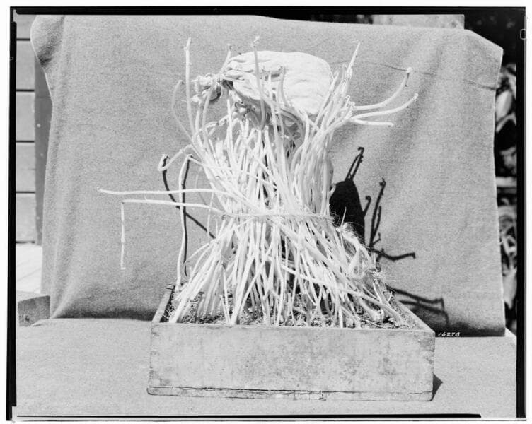I1 - Insectary - Santa Paula - Potato sprouts fully infested with mealy bugs - close up. Cryptolaemus (Lady Bird) beatles are introduced which lay eggs in the mealy bugs.