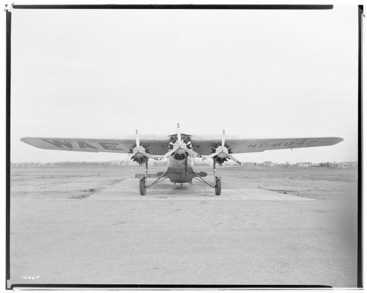 Power Consumers - Airports - Western Air Express - plane (Ford Tri-motor) close-up of 3 motors.