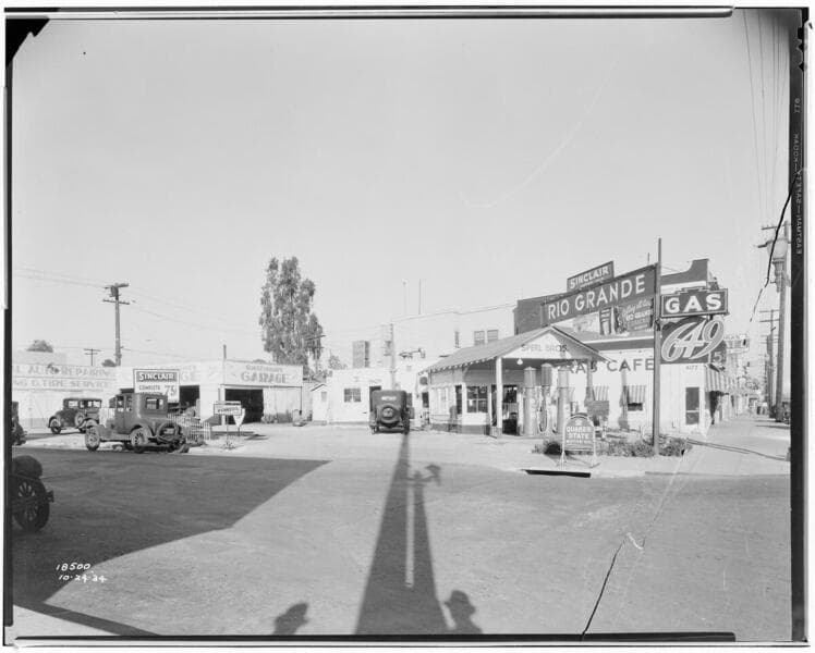 A1.3 - Auto Accidents - Wade Walden accident (10/17/1934). Gus Fossum's Garage on left from street.