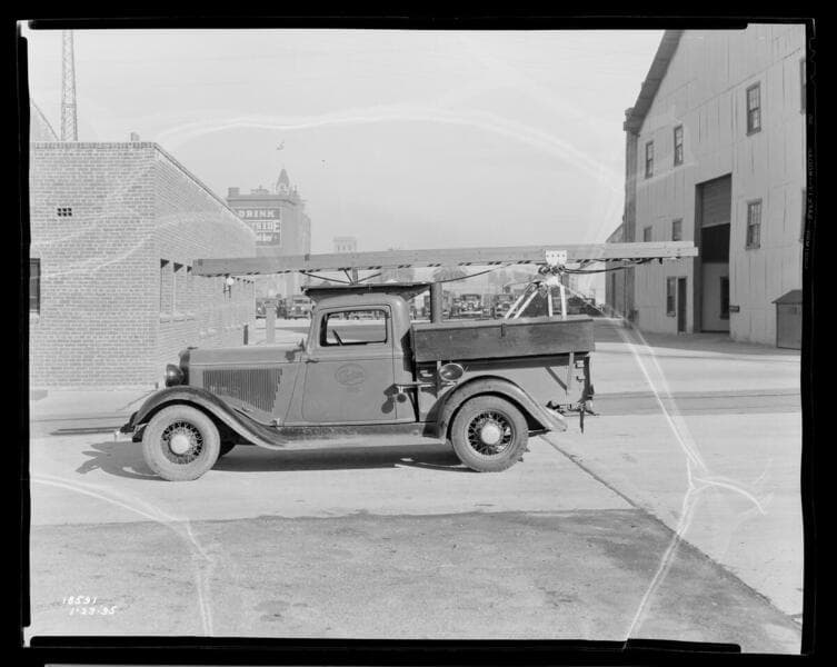 T3.1 Transportation - Autos, Trucks, & Railcars - Special Truck #2626 with ladder erect and man at top.