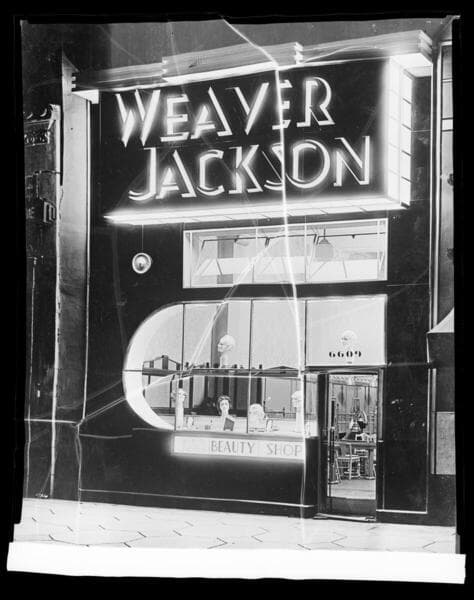 L1.3 - Lighting, stores - Night Lighting - Vogue Market, Vogue Beauty Salon, and Vogue Theater at 98th & Long Beach Blvd.