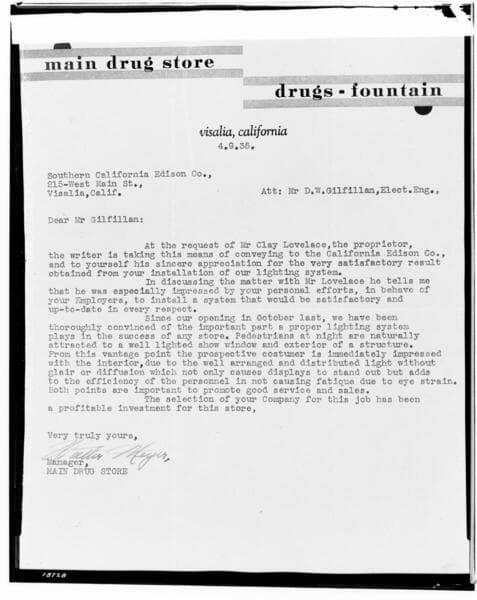 C1.2 - Letters - Letter of thanks from Ventura Drug Company to SCE for recommendation of electric illuminated signage.