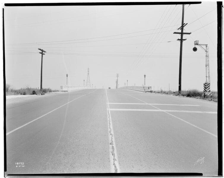 Distribution Lines - Bridge at Maywood with cars passing.