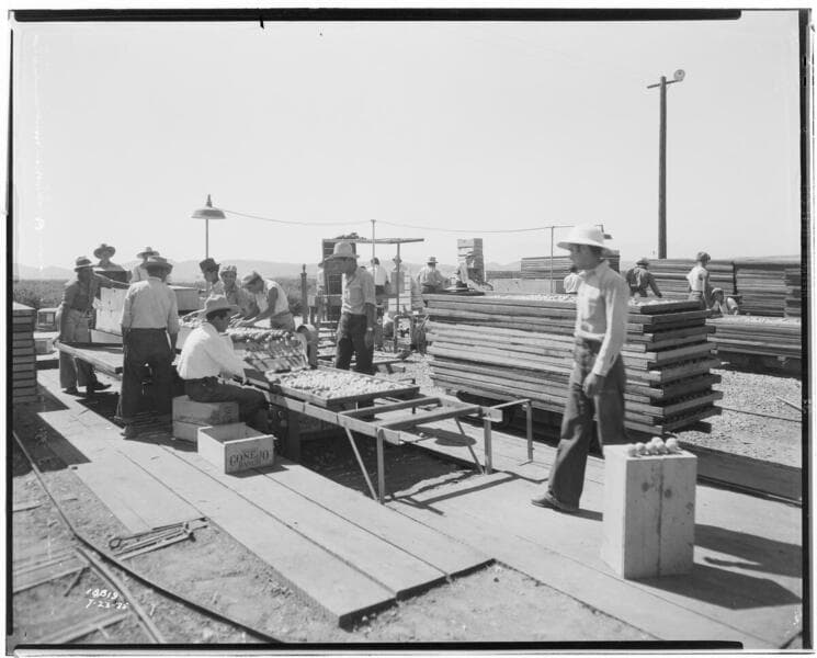 L1.8 - Lighting, Packing Plants - Murphy Ranch Packing House - Whittier - women sorting lemons on conveyor belts.