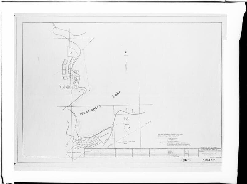 C1.3 - Maps - Distribution map of cabins, buildings and powerlines around a section of Huntington Lake.