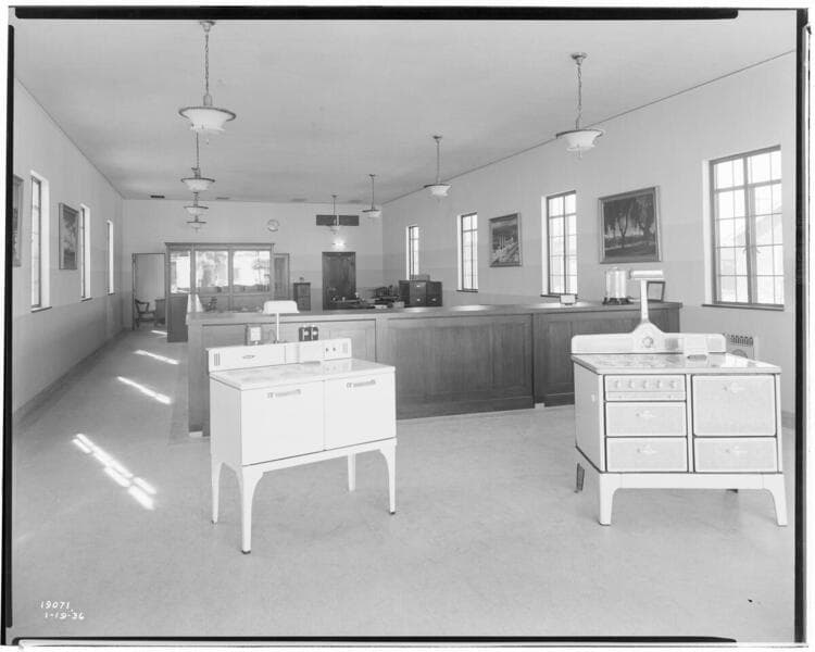 Local Offices A-Z - Covina Office - interior (air conditioned). [Range & washing machine on display].