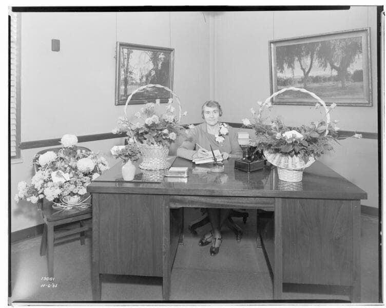 P1.2 - Portraits, misc. - Fred Hamilton - 40th year with Edison Company - [flowers and deep sea pole.]