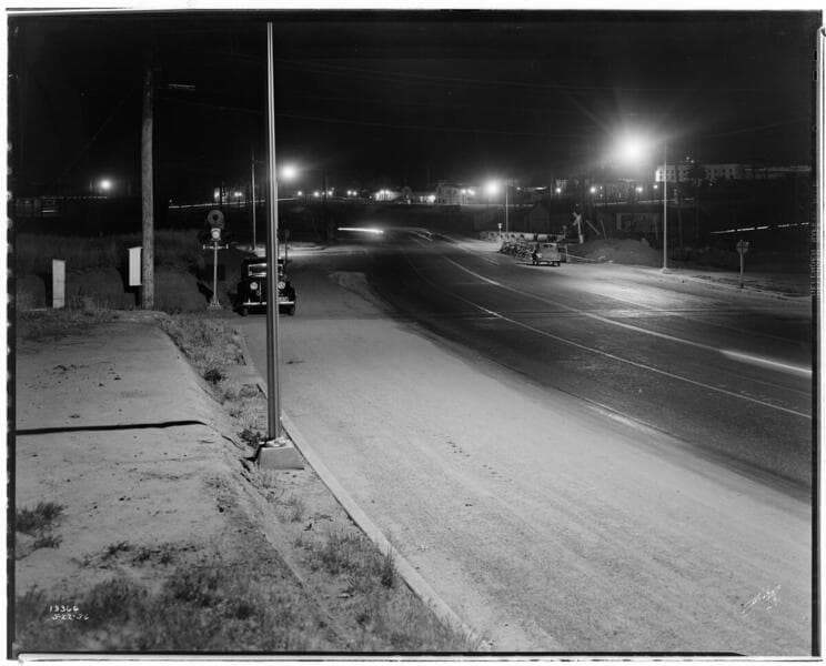 L1.2 - Lighting, streets - Sodium-Vapor street lighting - Night - Firestone Blvd., Inglewood.
