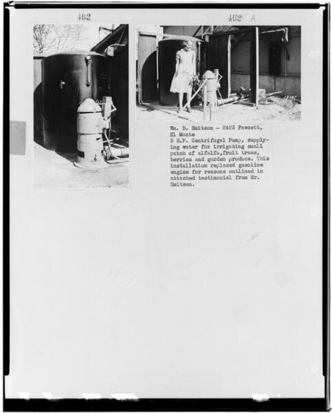 P4 - Pumping Plants - page 7 of Laws Book. [three copy prints of Pumping Plant customer - Otto Streich, used as W.P.A. Project Community Garden]