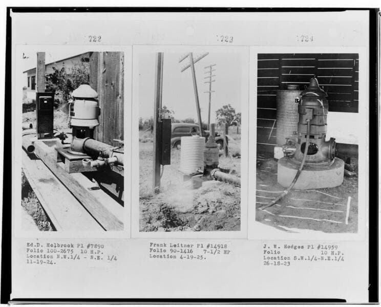 P4 - Pumping Plants - page 13 of Laws Book. [three copy prints of Pumping Plant customers - Charles Woolsey; Mr. Turner; and Simon & Tuton]