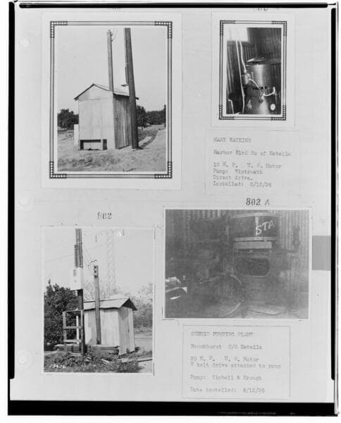 P4 - Pumping Plants - page 33 of Laws Book. [four copy prints of Pumping Plant customers - Nakagi Pumping Plant (Venice); and George E. Platt Dairy Co., Calabasas]