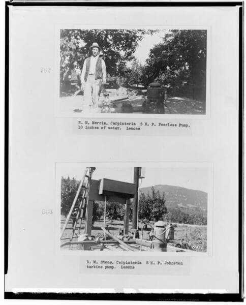 P4 - Pumping Plants - page 50 of Laws Book. two copy prints of Pumping Plant customers