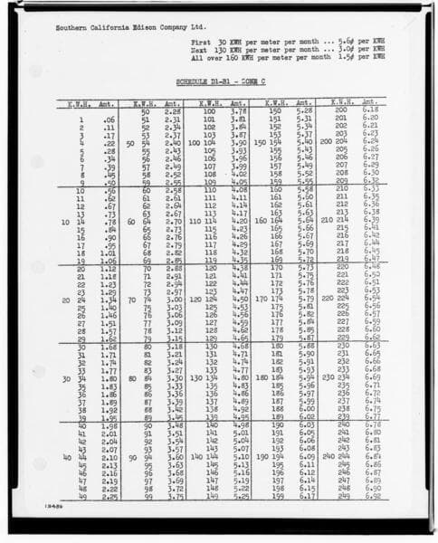 C1.1 - Charts miscellaneous - Rate Schedule