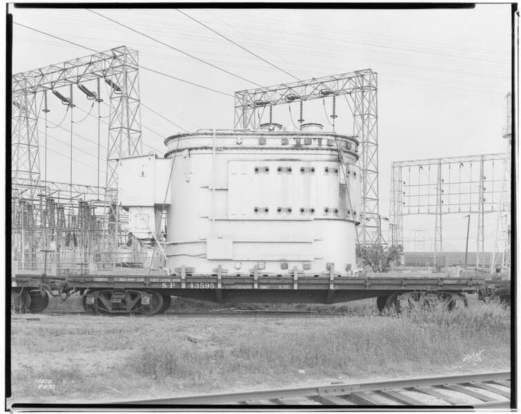 Magunden Switching Station - Transformers for Magunden - loaded on flatcars at Vestal Sub.