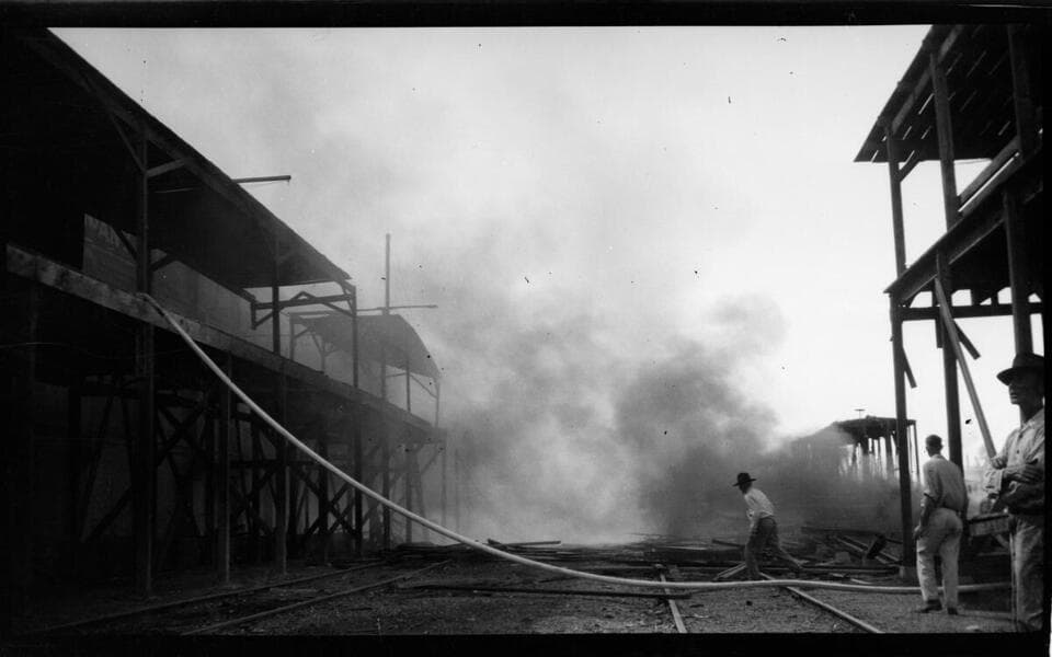 [Imperial Ice Co. Plant No. 2 - fire with structure burned.]