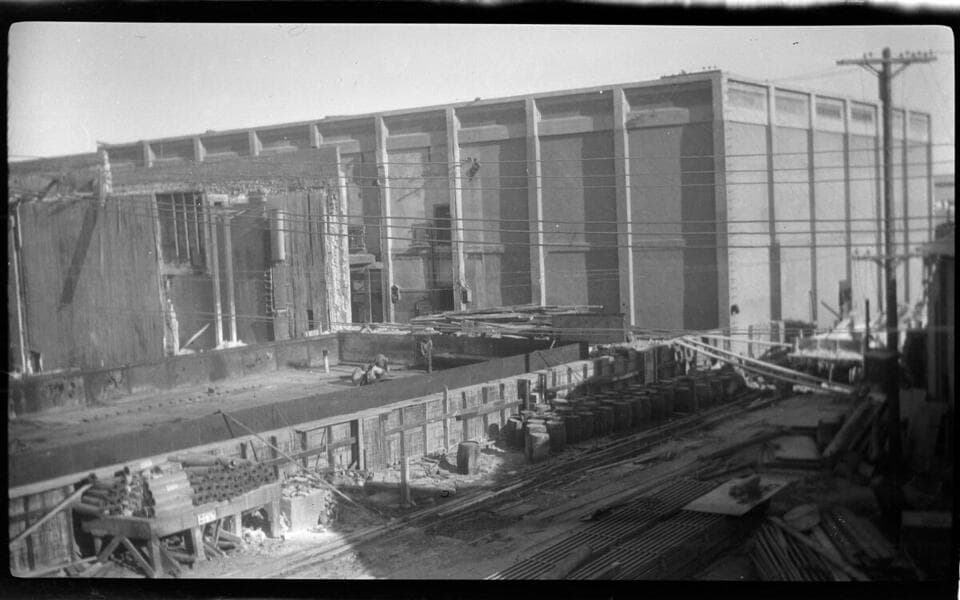 [Imperial Ice Plant 2 damaged by fire - hole punched in side of brick building to access fire]