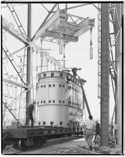 Magunden Switching Station - Hoist placing Transformer on rail-cars