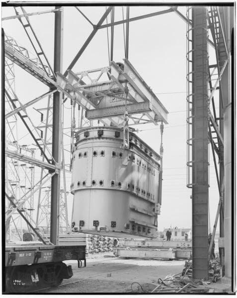 Magunden Switching Station - Hoist placing Transformer on rail-cars