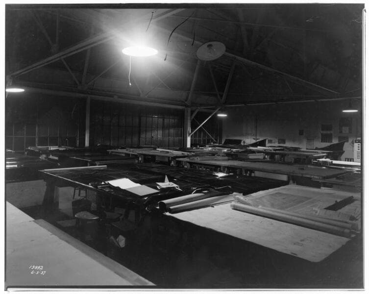 L1.1 - Lighting, misc. - Industrial Lighting - Drafting Room of Vultee Aircraft (after) - Downey.
