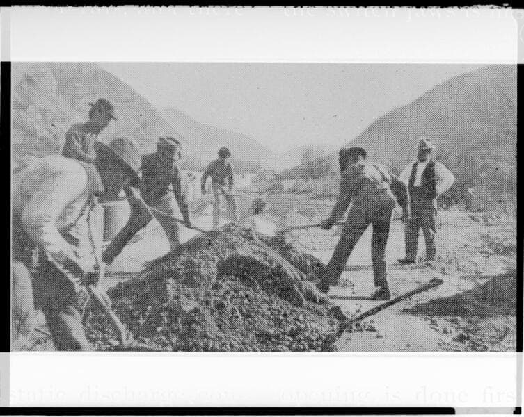 A construction crew making cement pipe for the waterway at Mill Creek #3 Hydro Plant