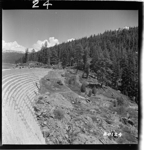 Huntington Lake - Backfill - Completed Fill upstream face East end Dam #1.