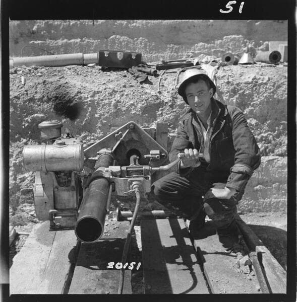 Machine set up for drilling core hole d-1 downstream face Dam 1, station 9+78.5, elevation 6812.4.