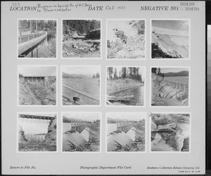 Big Creek, Huntington Lake Dams - Progress of backfills on Huntington Lake Dams by Stone & Webster Co