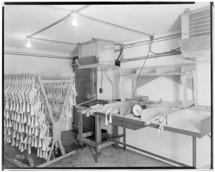 P2 - Poultry - Wagon Wheel Poultry Ranch in Redondo - Two unidentified men outside poultry building.