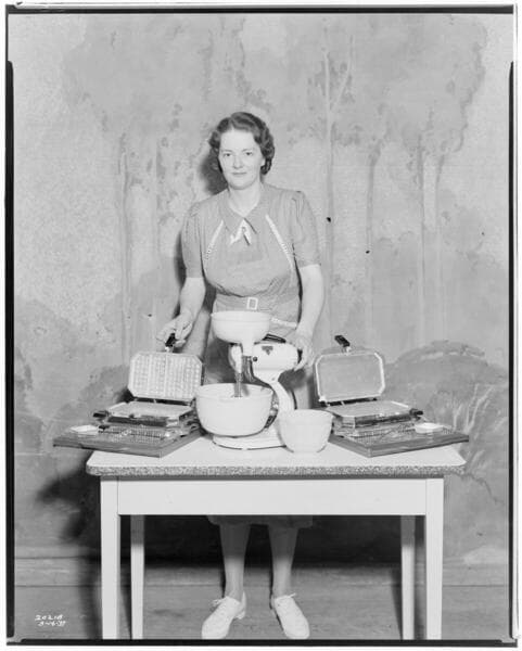 H2.3 - Home Kitchen - Electric Heating - Residence of H. C. Smith - Woman cooking at electric range in kitchen.