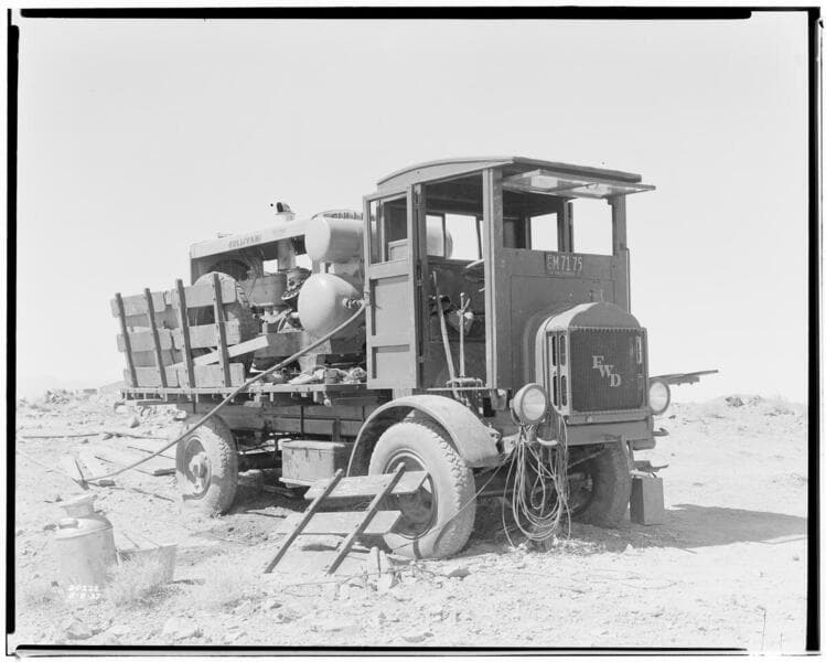 Boulder-Chino Transmission Line - Jackhammer Mi. 148-2 [Men drilling rock]