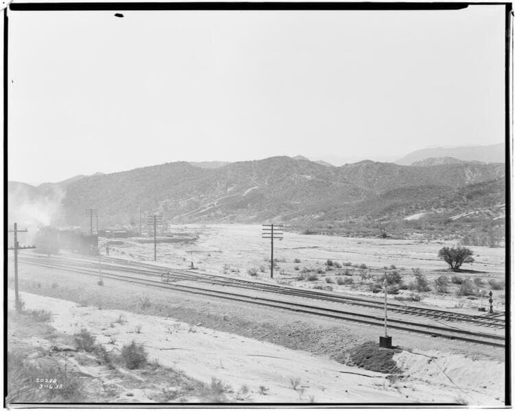 Boulder-Chino Transmission Line (3rd) - Storm damage near M42T2. Looking westerly along Patrol Road.
